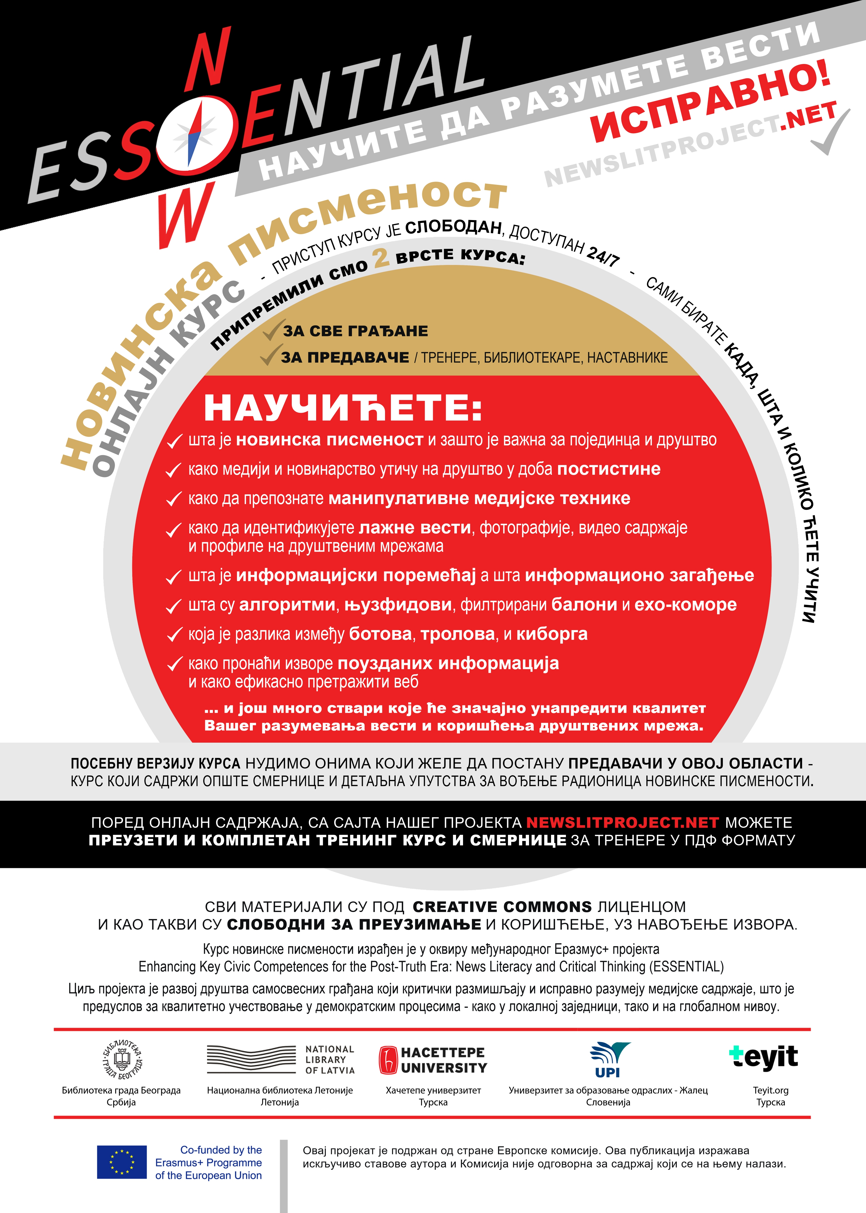 Онлајн курс новинске писмености израђен је у оквиру међународног Еразмус+