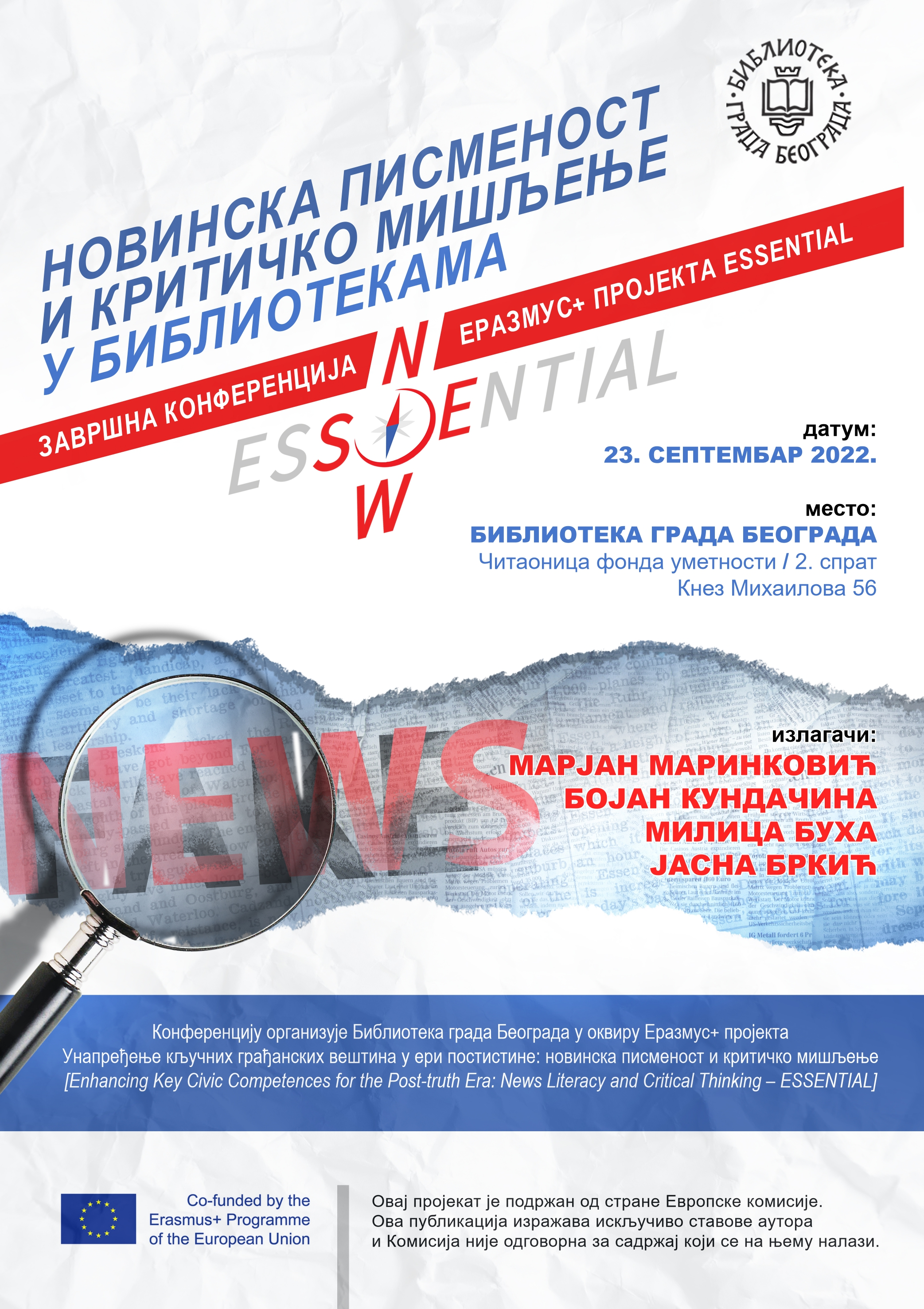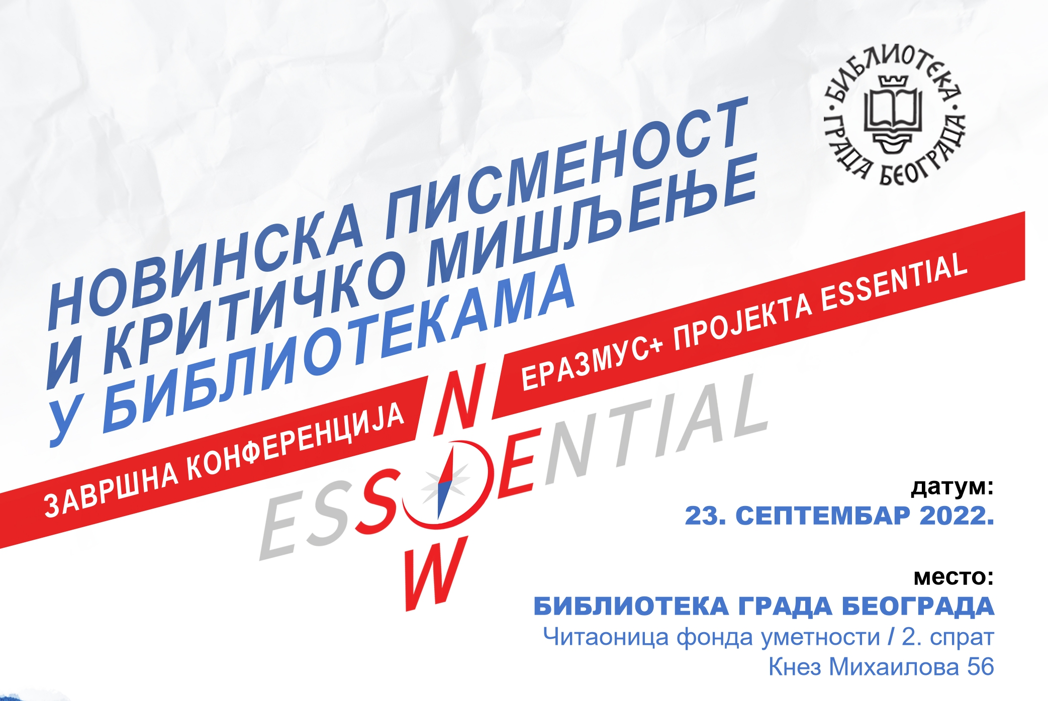 У петак, 23. септембра 2022, у Библиотеци града Београда (БГБ) одржана је конференција под називом Новинска писменост и критичко мишљење у библиотекама – завршна конференција пројекта ESSENTIAL.