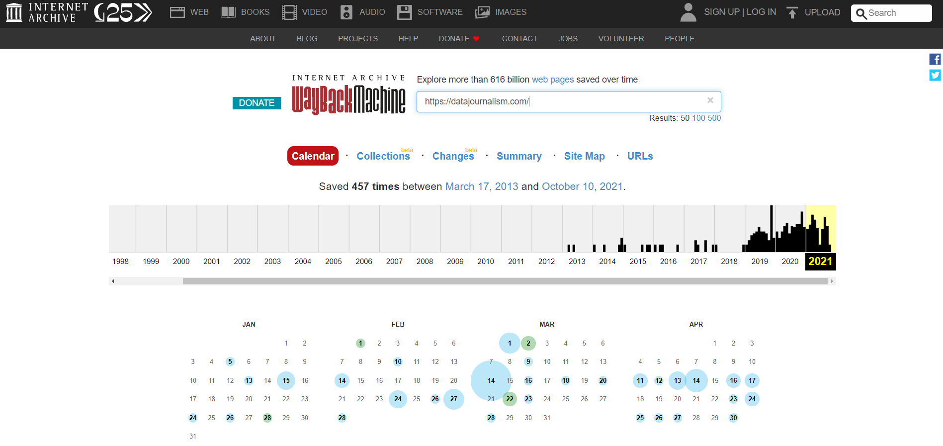 Graham, M. (2021, May 5). Tips for using the Internet Archive’s Wayback Machine in your next investigation. Global Investigative Journalism Network.