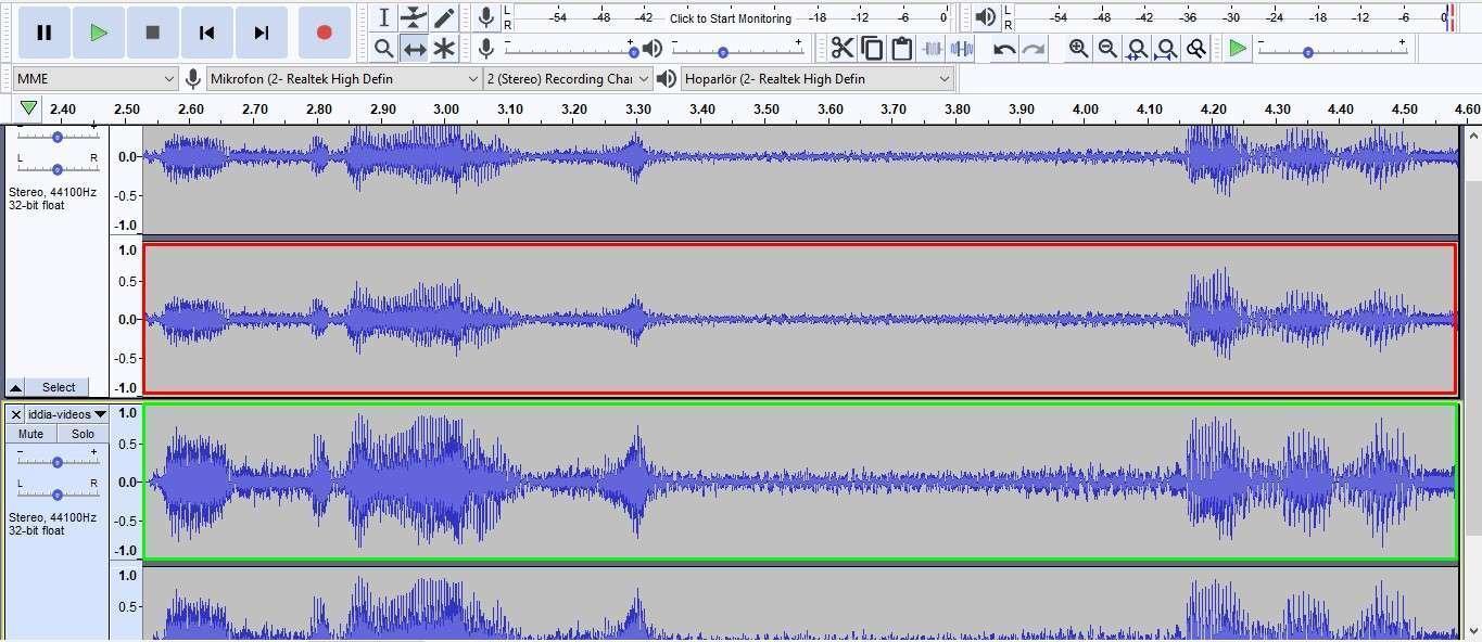 (Območje, označeno z rdečo barvo, so zvočni valovi izvirnega videoposnetka, območje, označeno z zeleno barvo, pa je zvok v zahtevanem videoposnetku.)