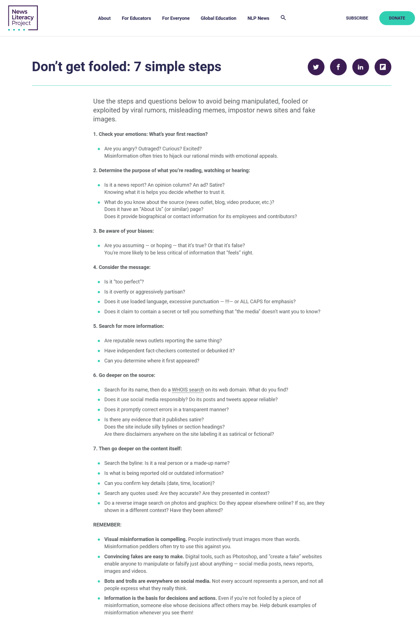 News Literacy Project. (2021). Don’t get fooled: 7 simple steps.