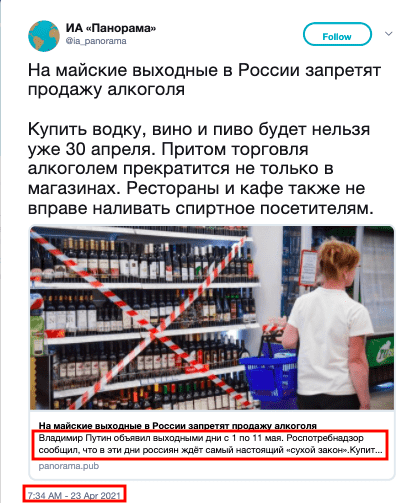Teyit. (2021, April 30). Putin’in Rusya’da içki satışını 11 gün yasakladığı iddiası [No, Putin did not ban alcohol sales in Russia for 11 days]. Teyit.
