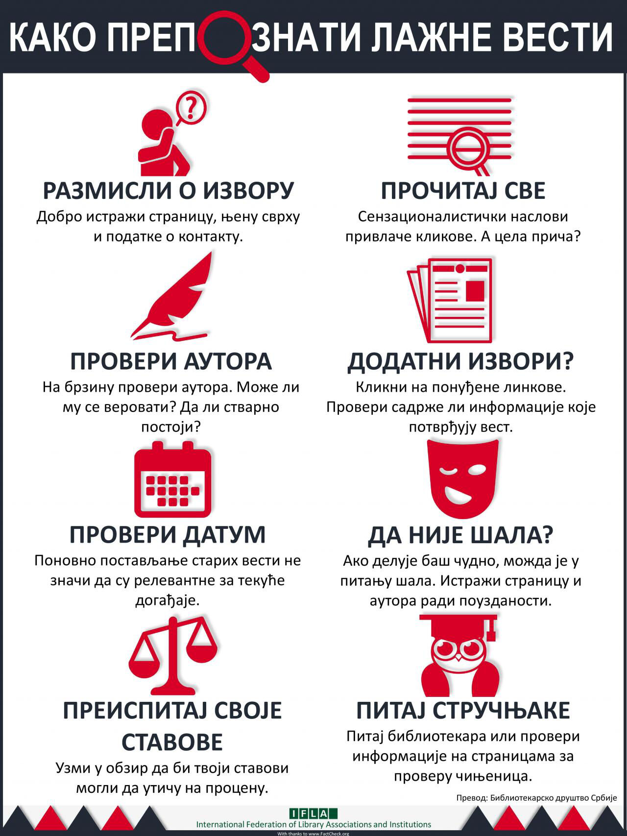За проверу чињеница може се урадити следеће: