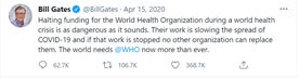 Schlosser, K. (April 15, 2020). Bill Gates calls Trump’s freeze on WHO funding ‘dangerous’ and tweet draws a viral response. GeekWire.