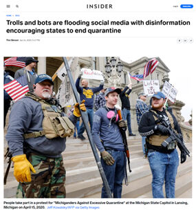 Benson, T. (April, 24, 2020). Trolls and bots are flooding social media with disinformation encouraging states to end quarantine. Insider.