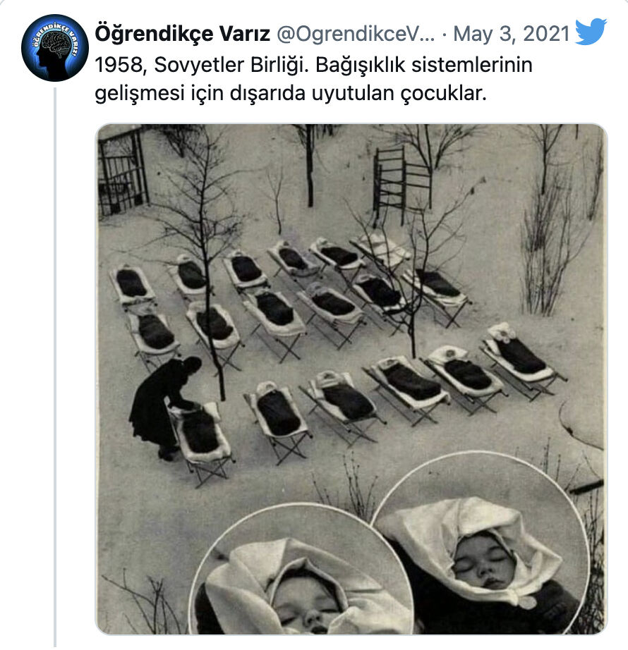 İddia: Sovyetler Birliğinde bağışıklık sistemlerinin gelişmesi için dışarıda uyutulan bebeklere ait olduğu iddia edilen fotoğraf