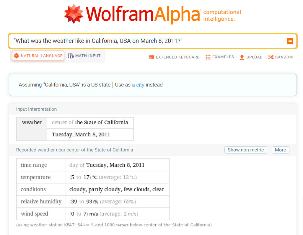 Örnek: “8 Mart 2011’de ABD Kaliforniya’da hava nasıldı?”