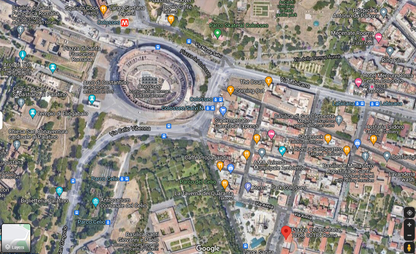 İlk olarak, Google Haritalarda “Piazza Celimontana” araması yaparız: