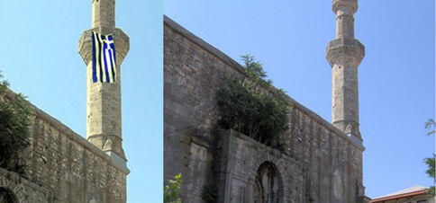 Örnek: Aşağıdaki fotoğrafın Dimetoka’daki camiye Yunanistan bayrağı asıldığını gösterdiği iddiasına bakalım.