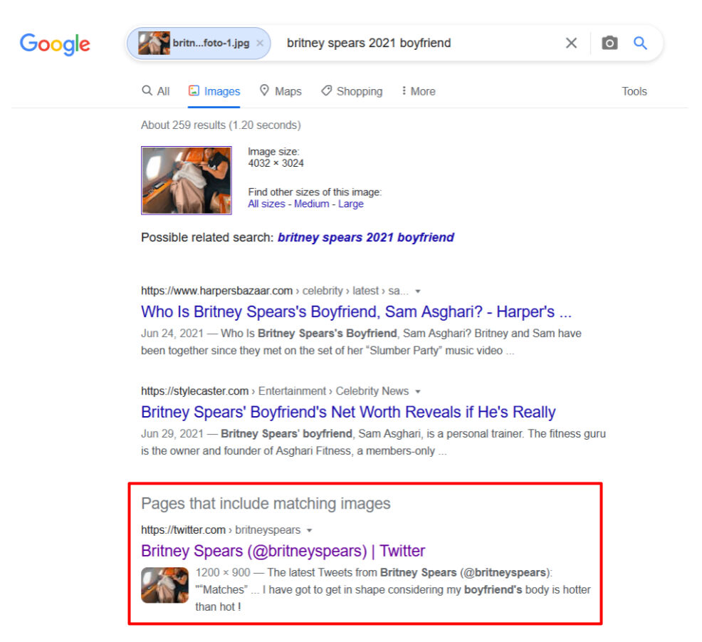 Örnek: Sosyal medyada yer alan bir haberde, aşağıdaki görselin Britney Spears tarafından paylaşıldığı belirtilmektedir. Tersine görsel arama ile bunun doğruluğunu araştıralım.